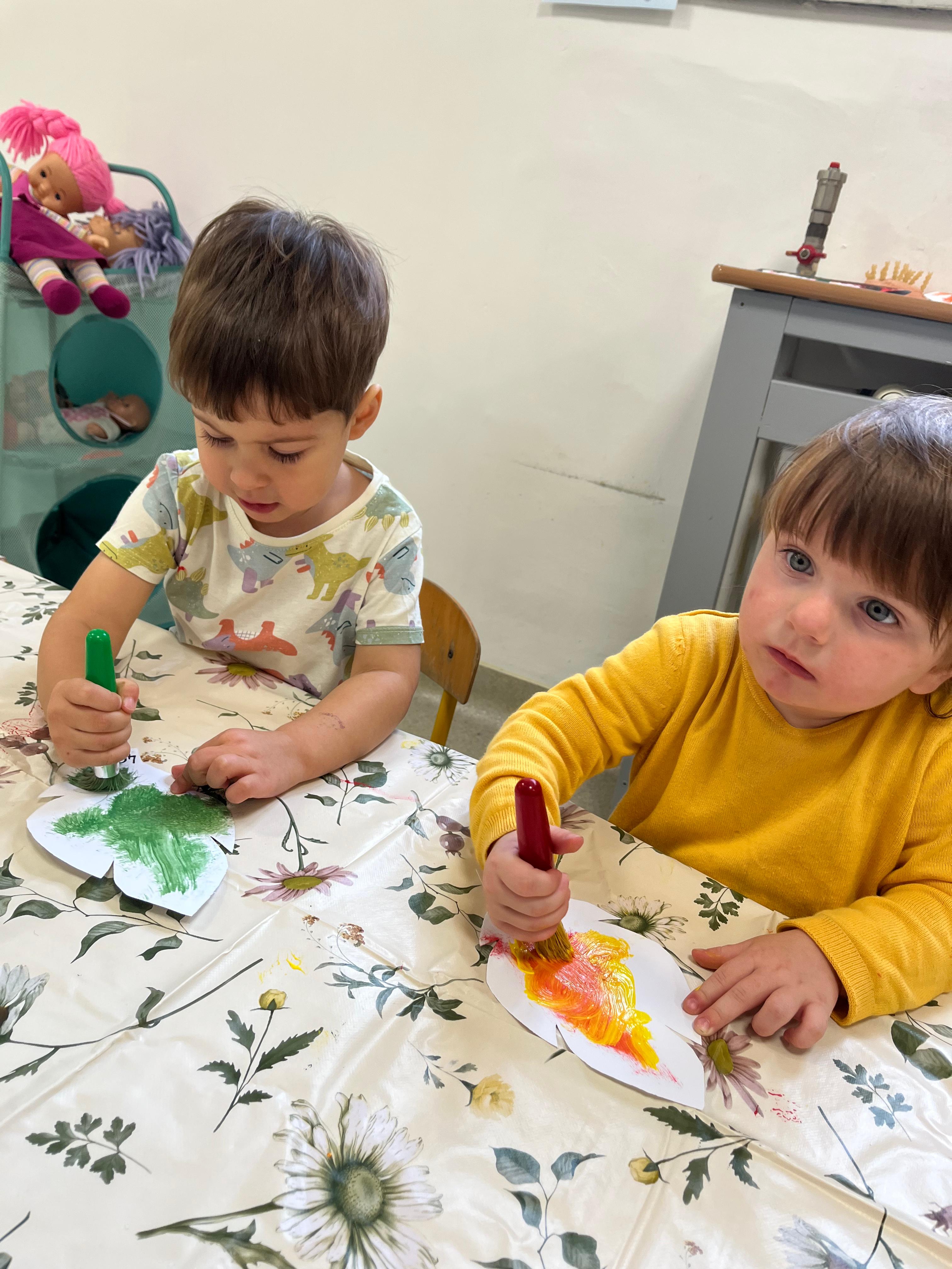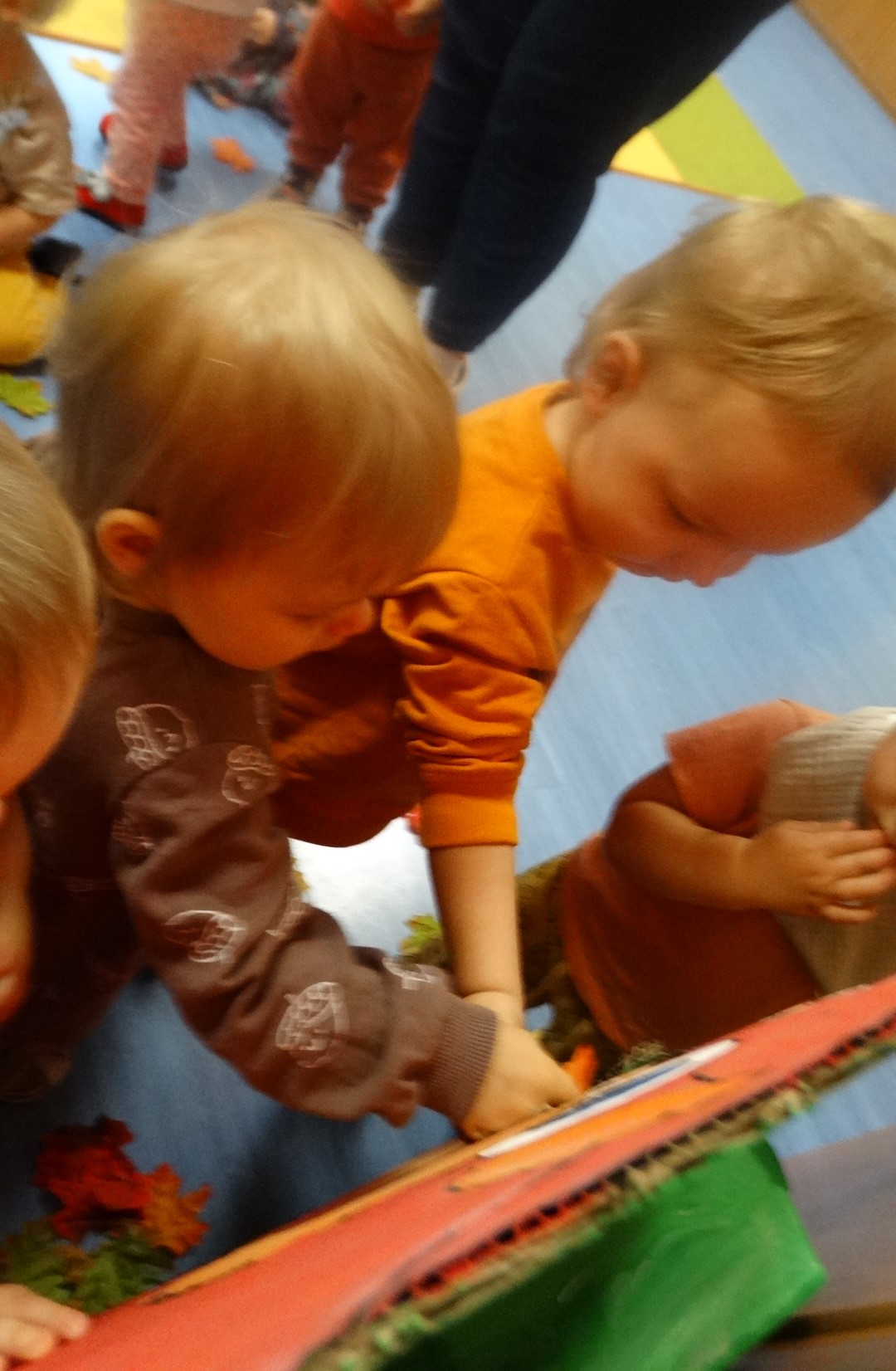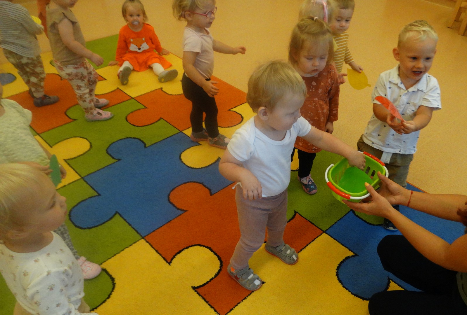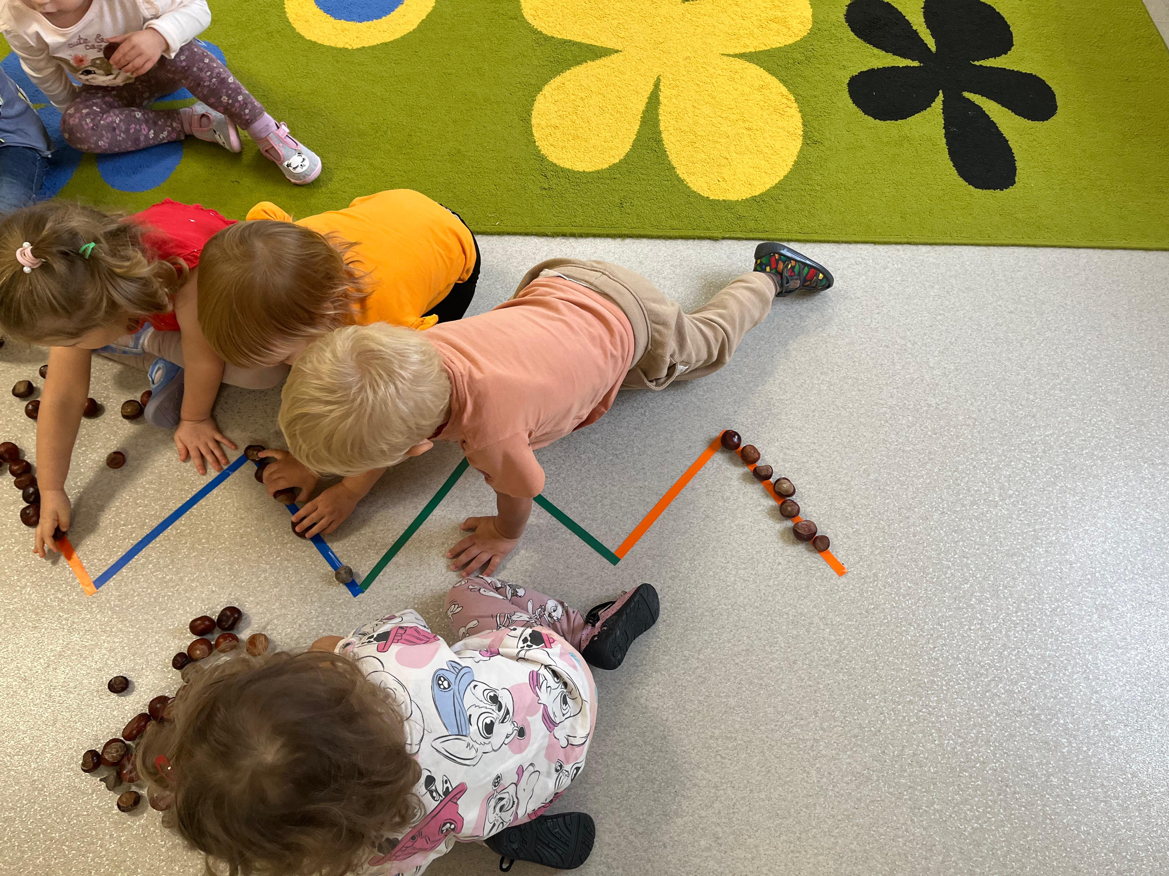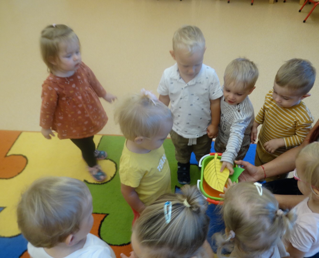 Kolorowe listki opadają w dół.