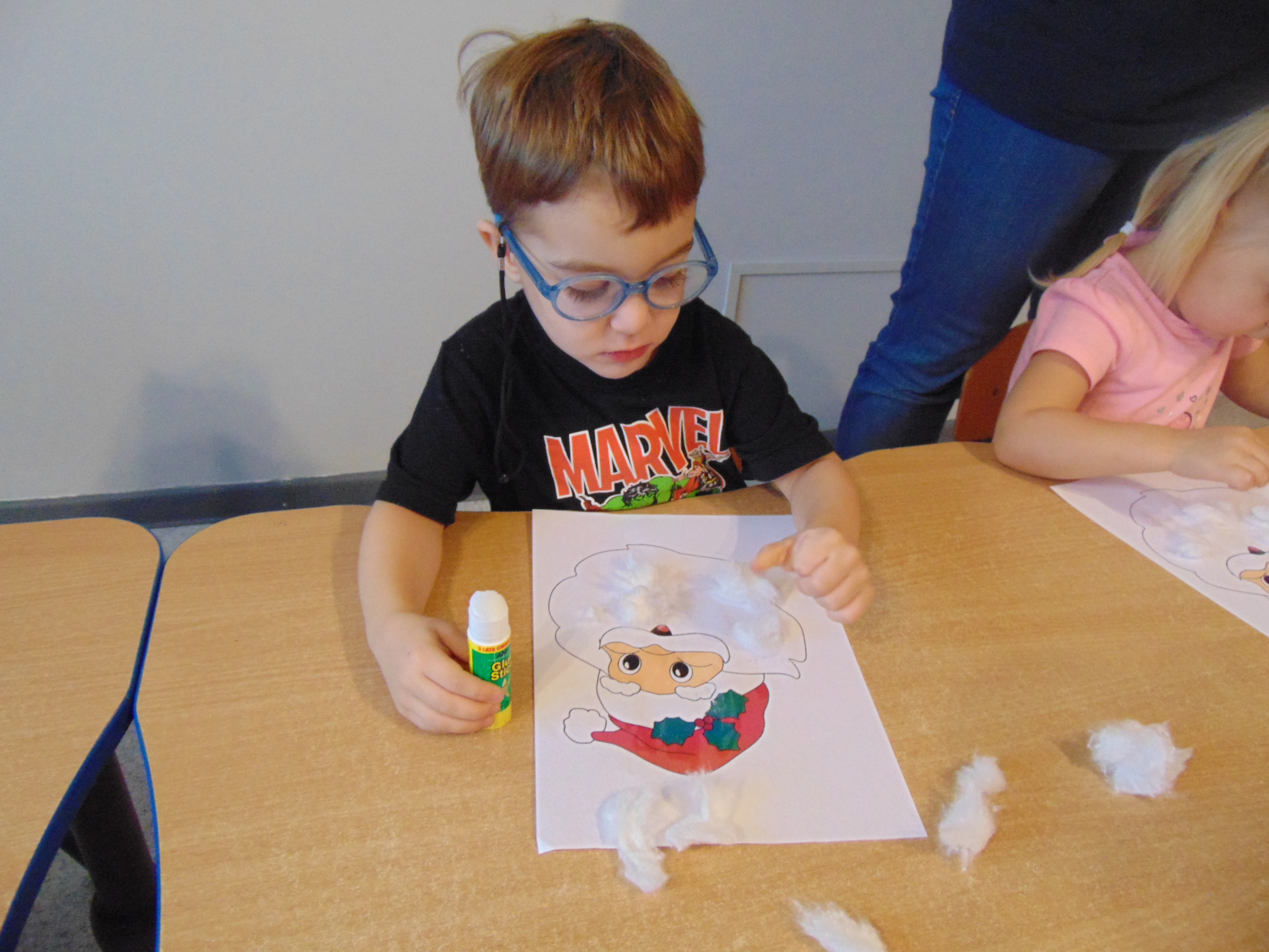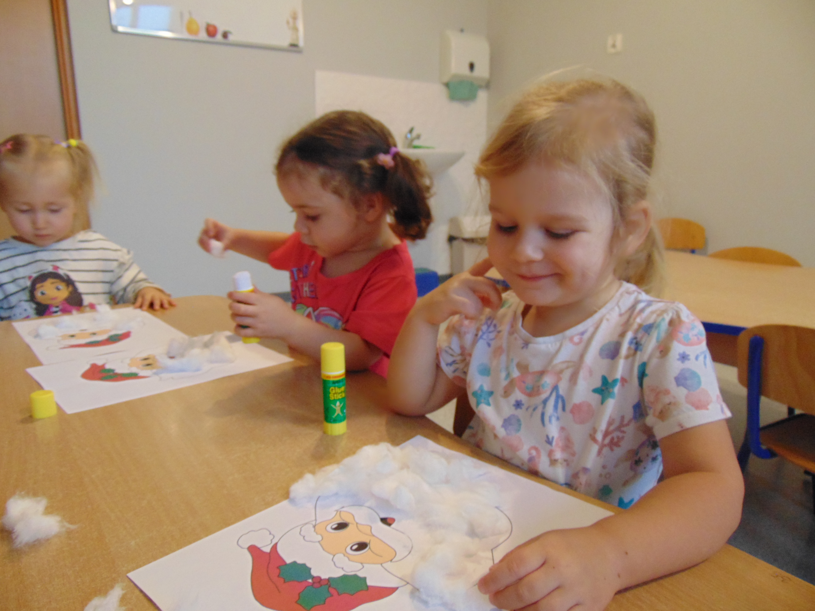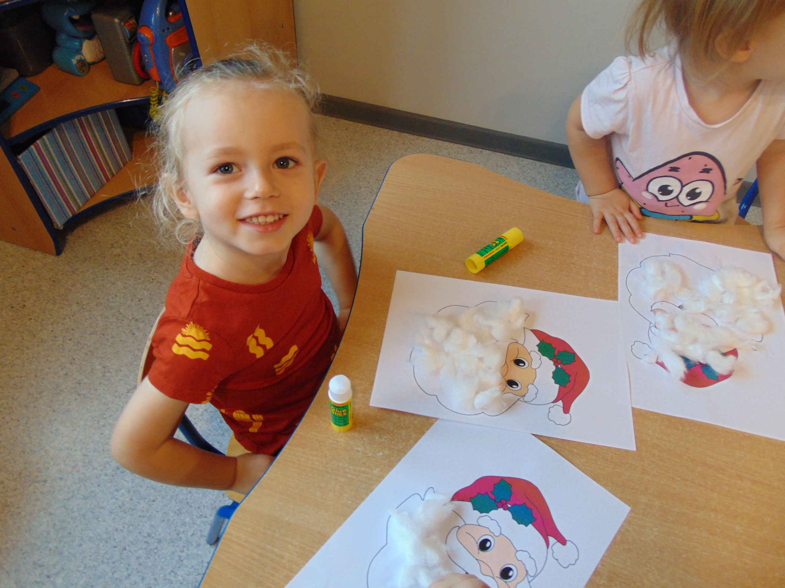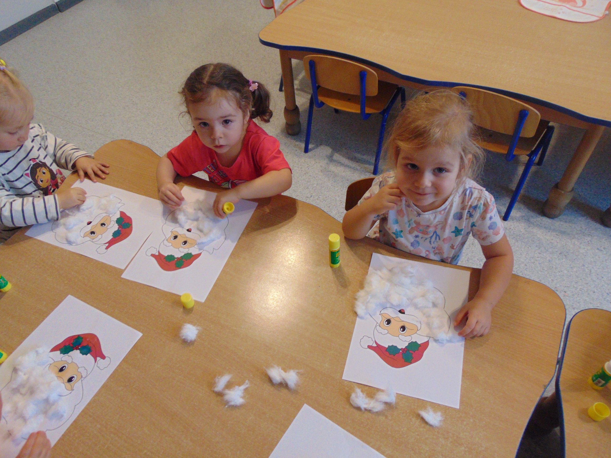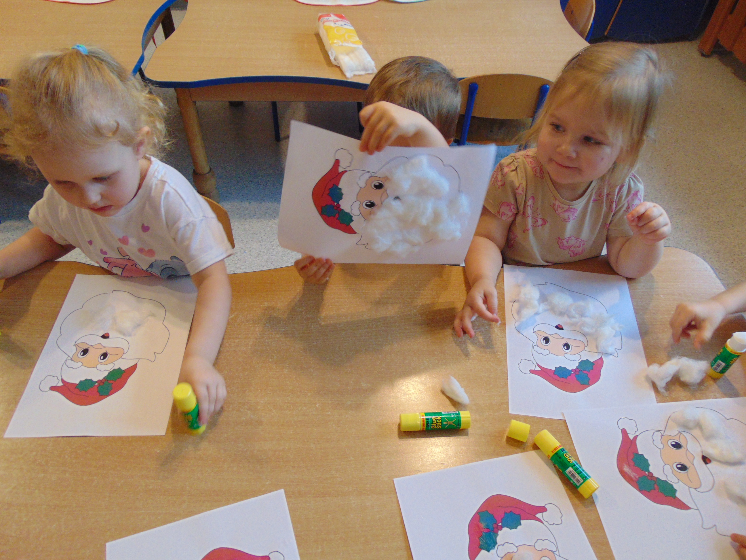 a także stworzyły podobiznę św. Mikołaja, wyklejając jego brodę miękką, puszystą watą.