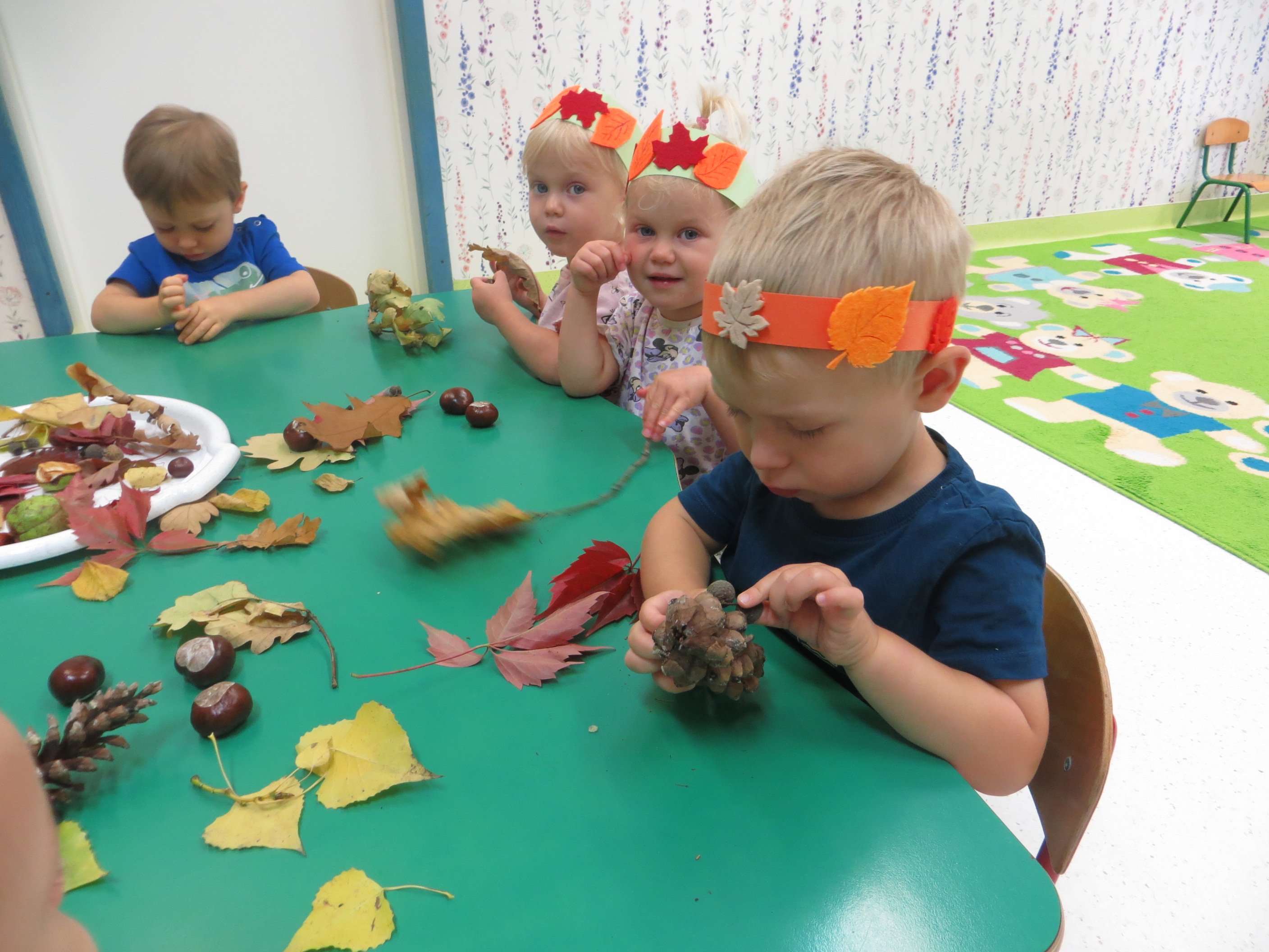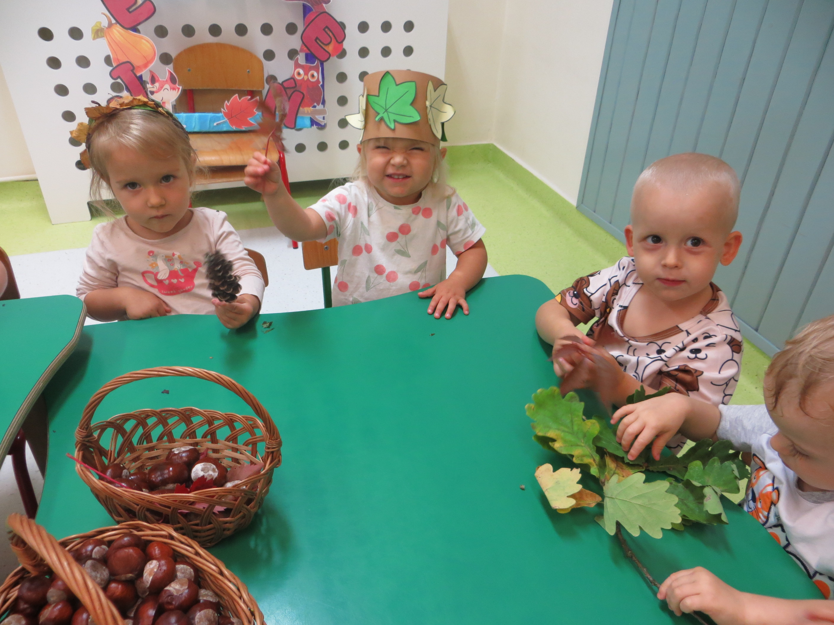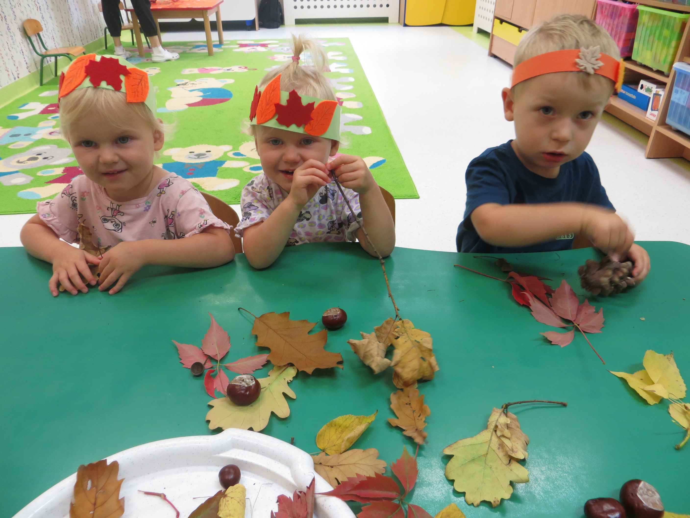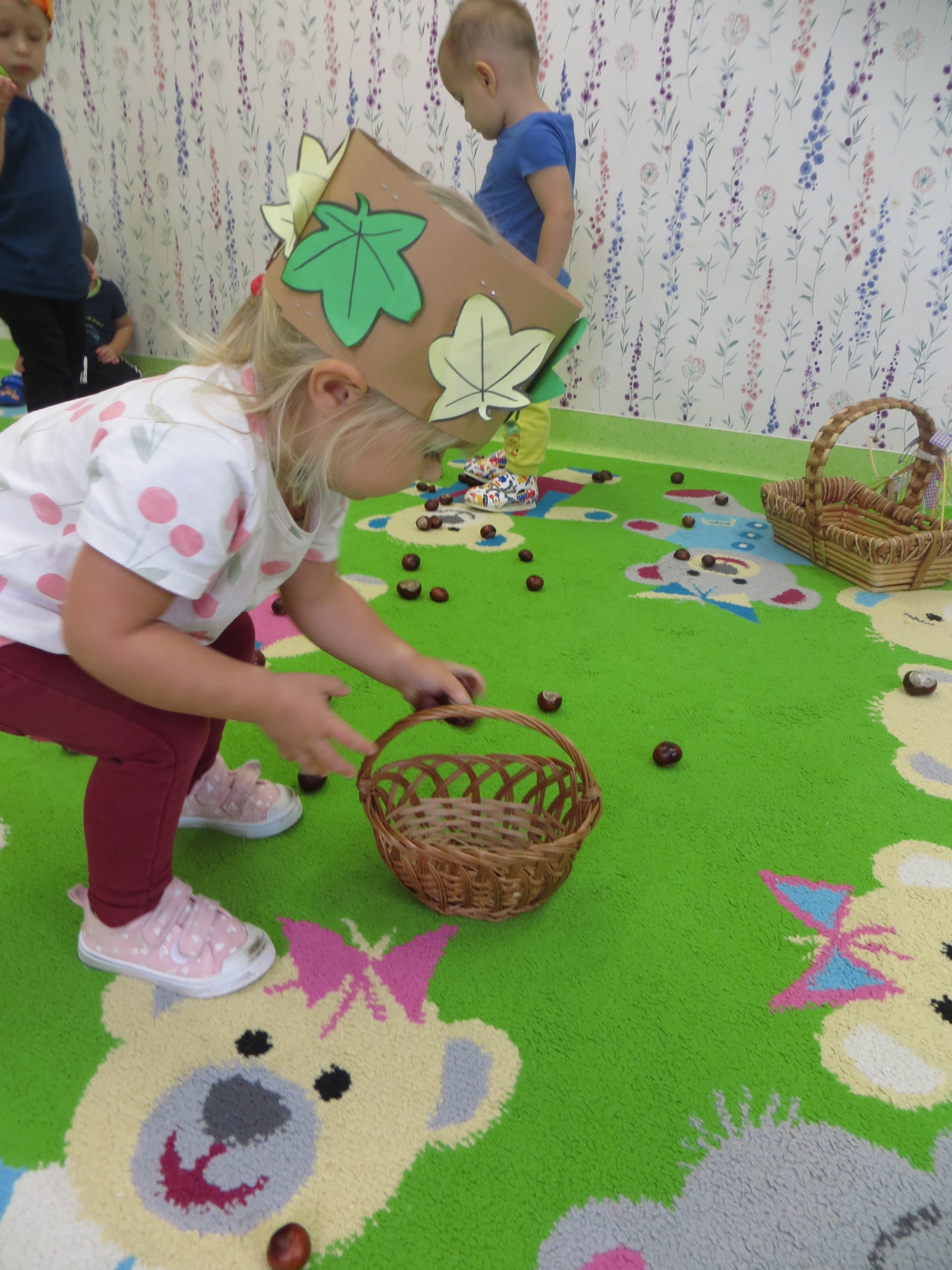 Lecą liście z drzewa, zbierają je dzieci,