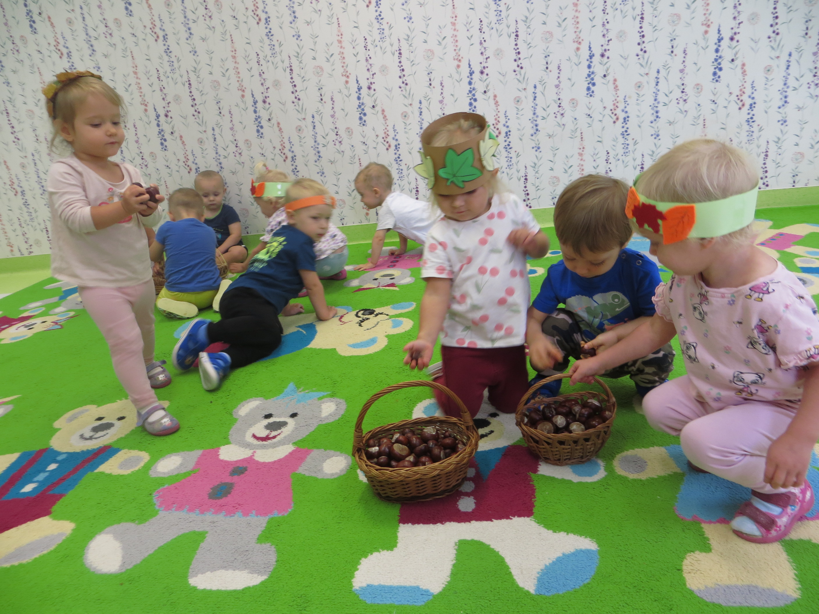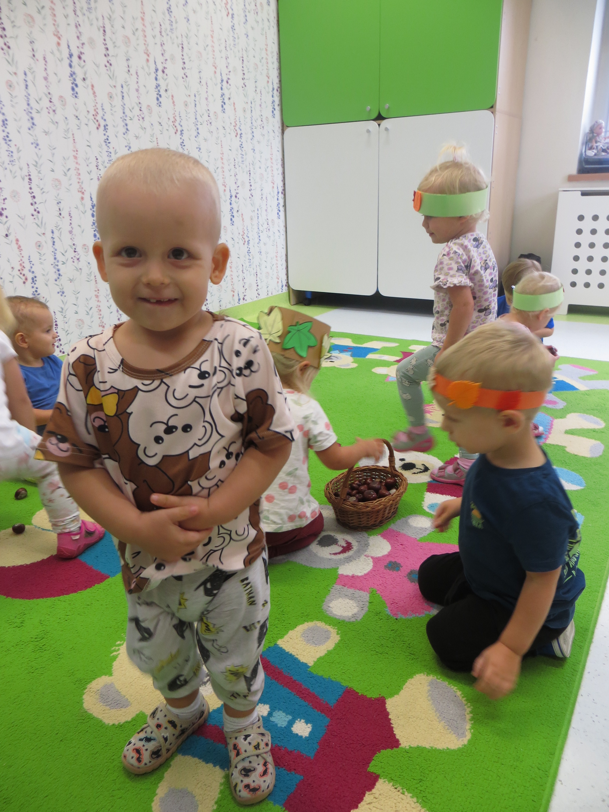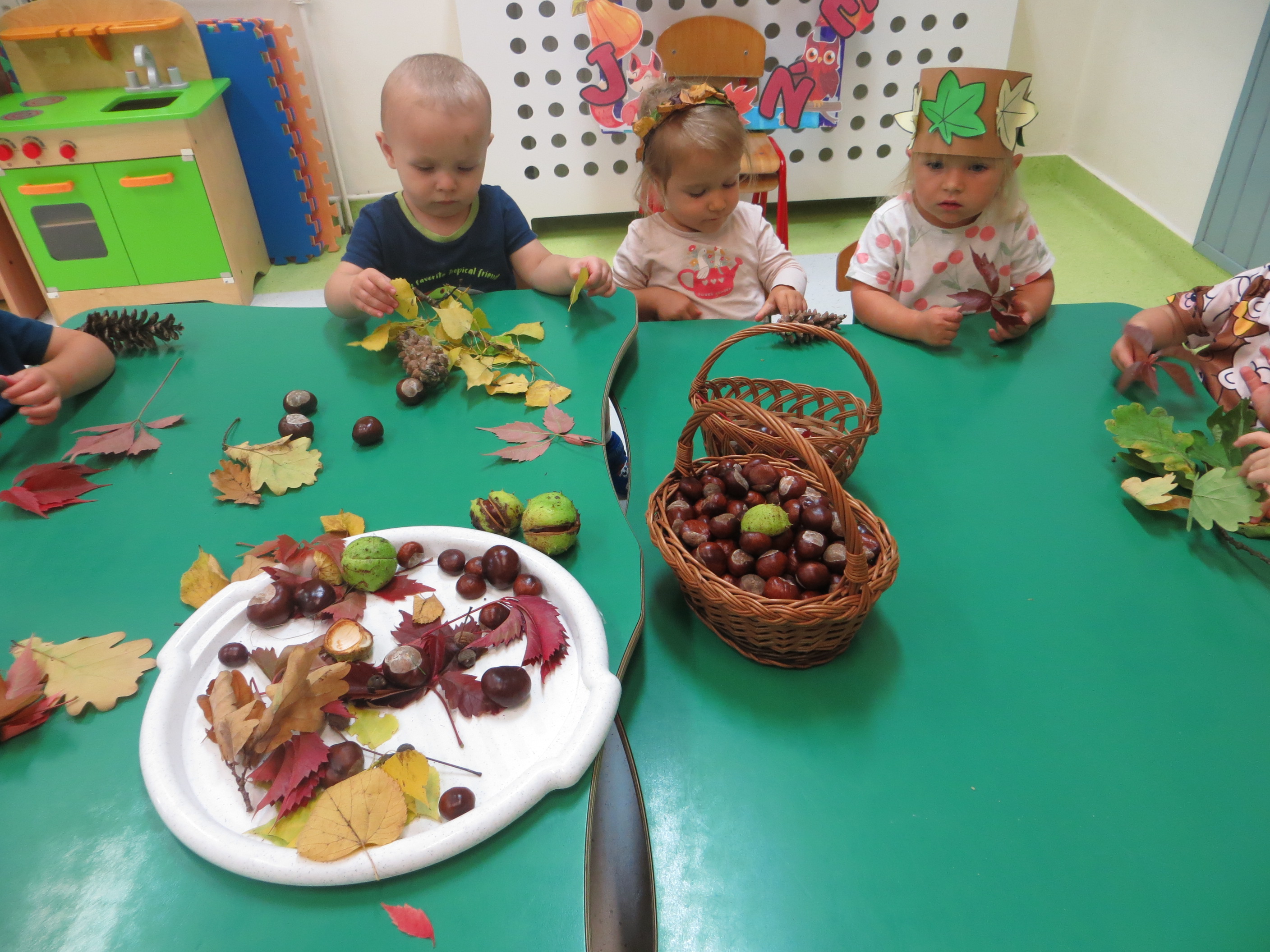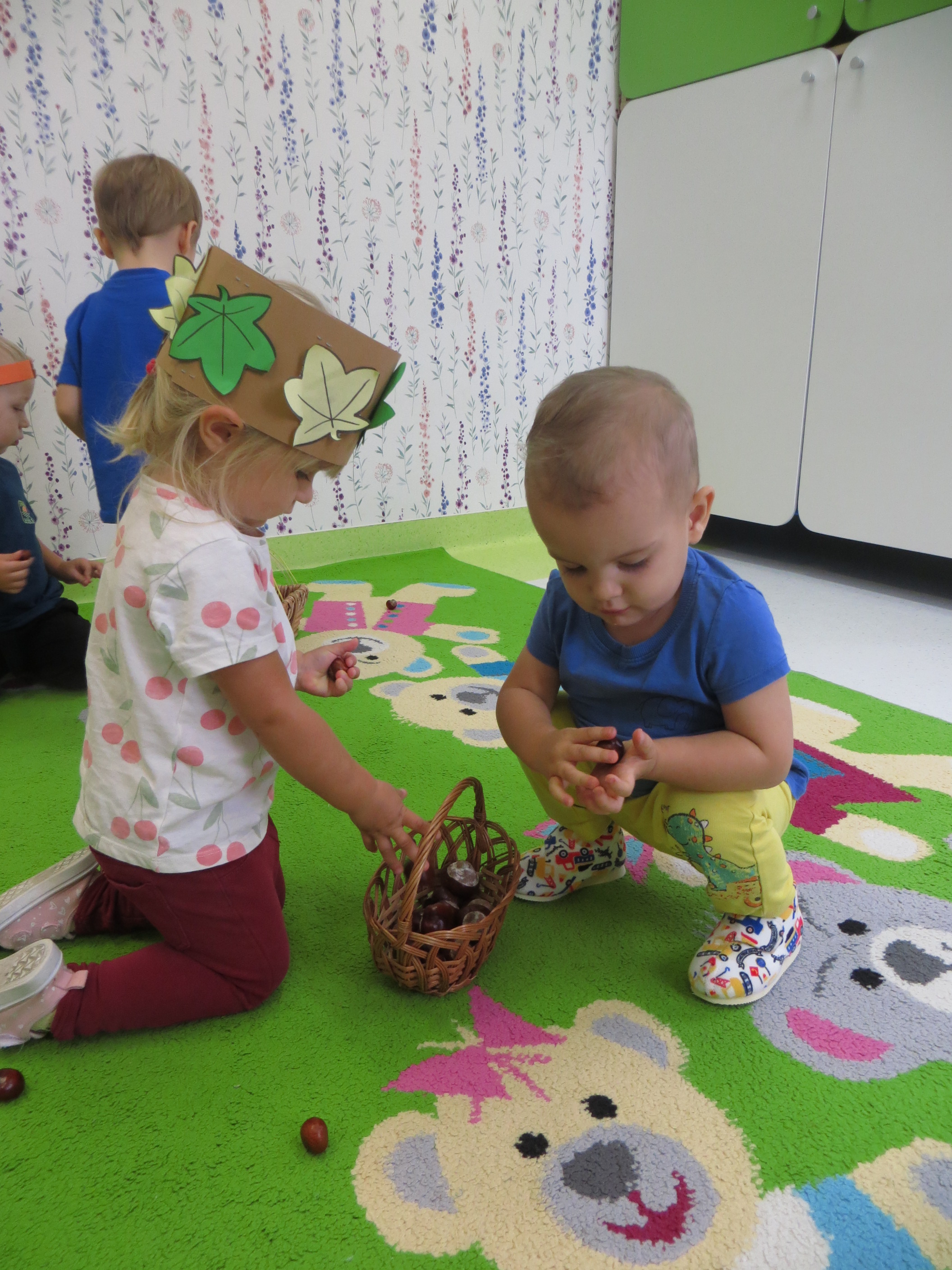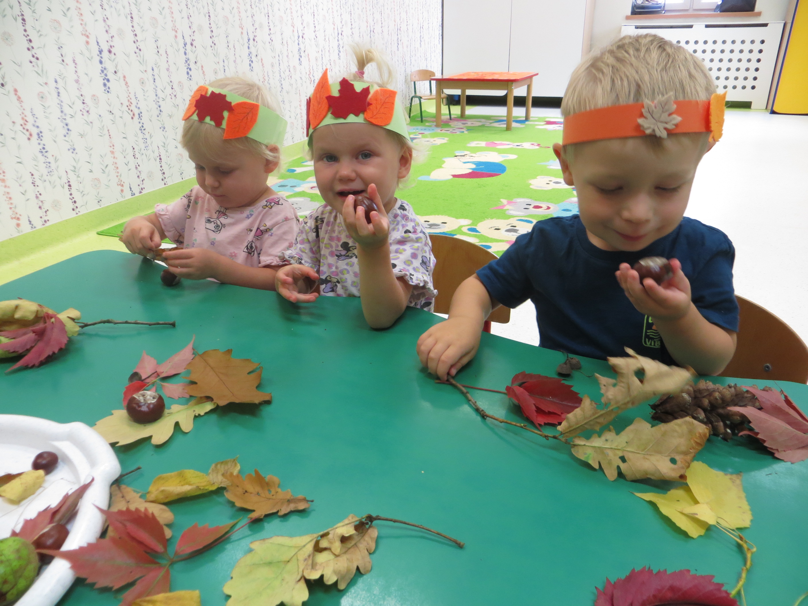 Lecą liście z drzewa, zbierają je dzieci,