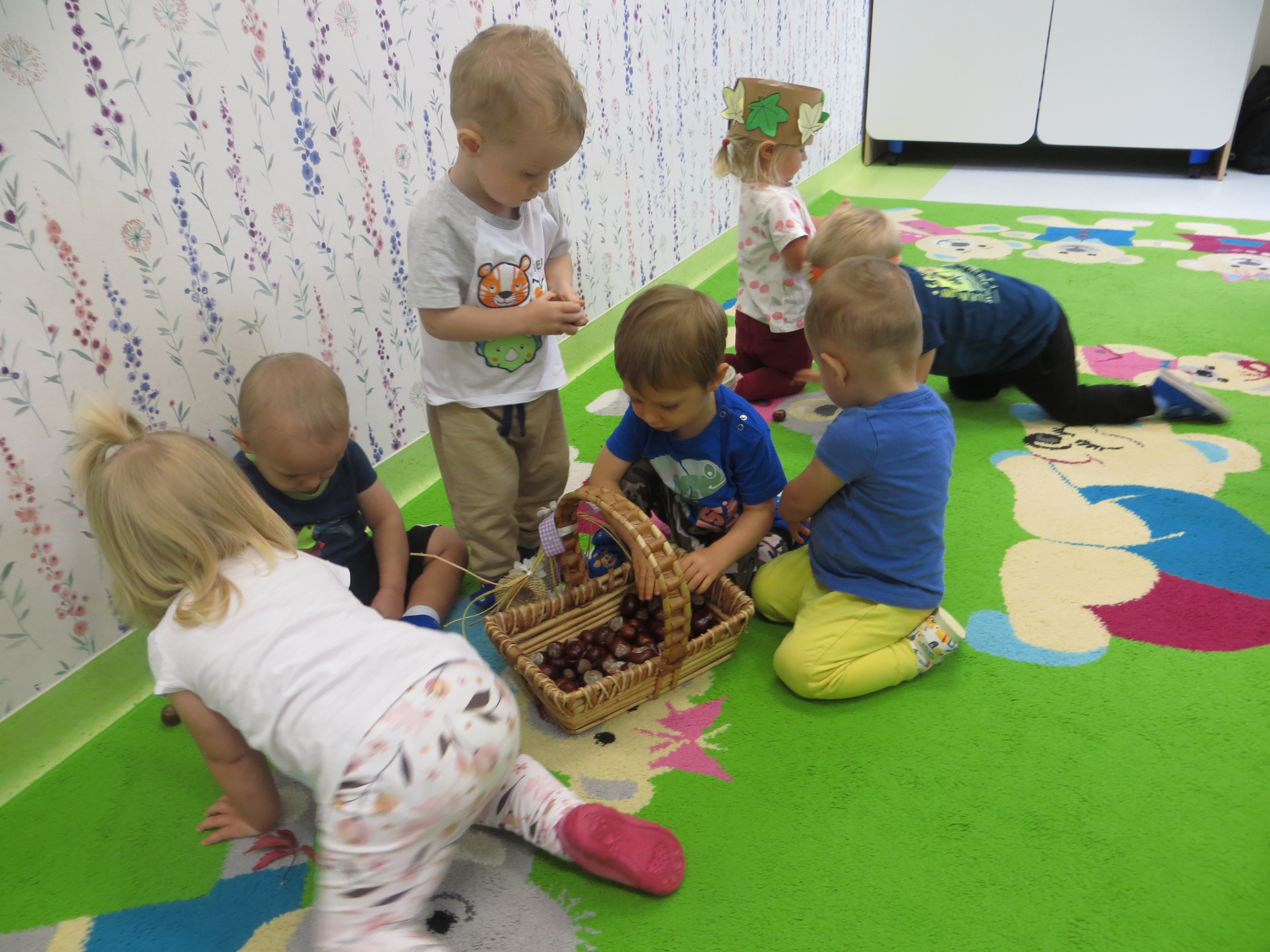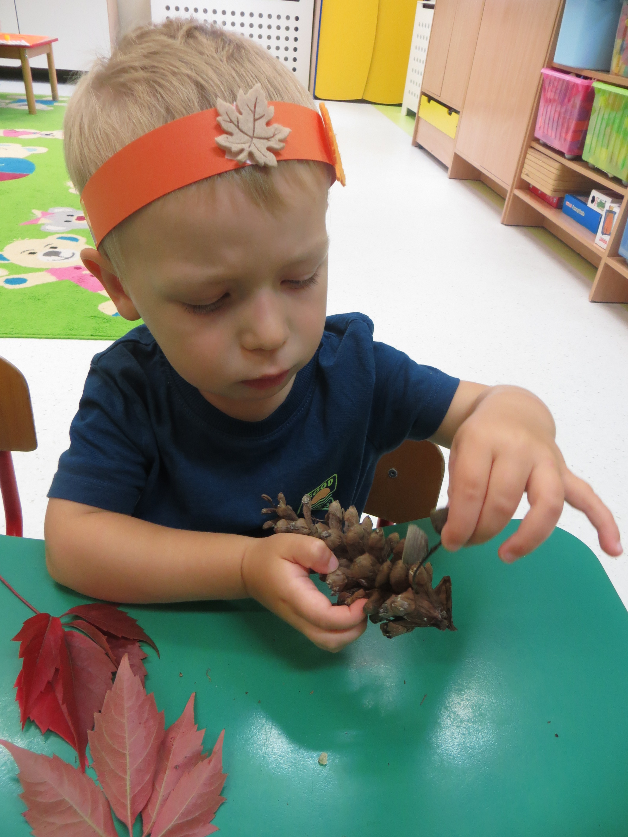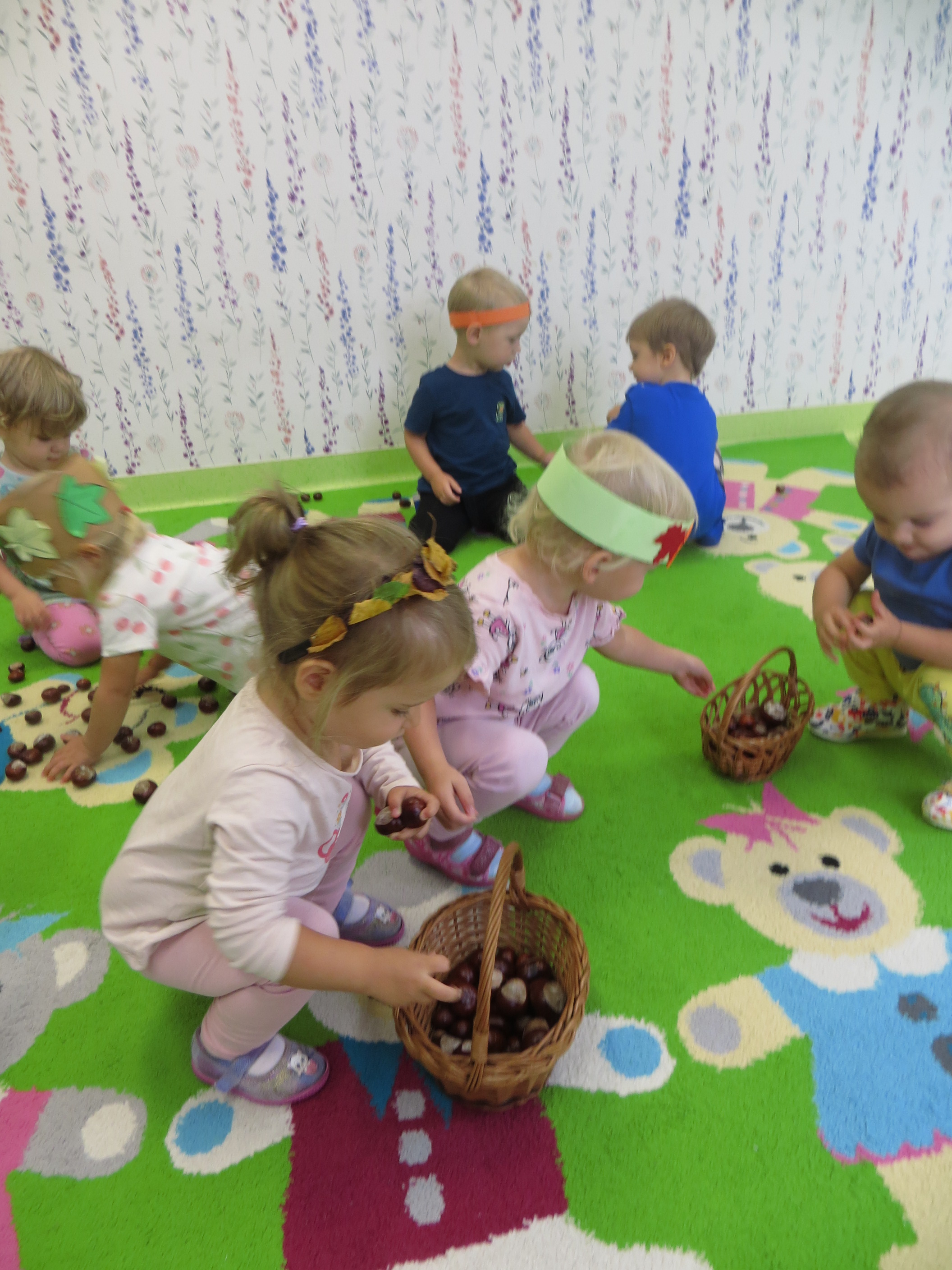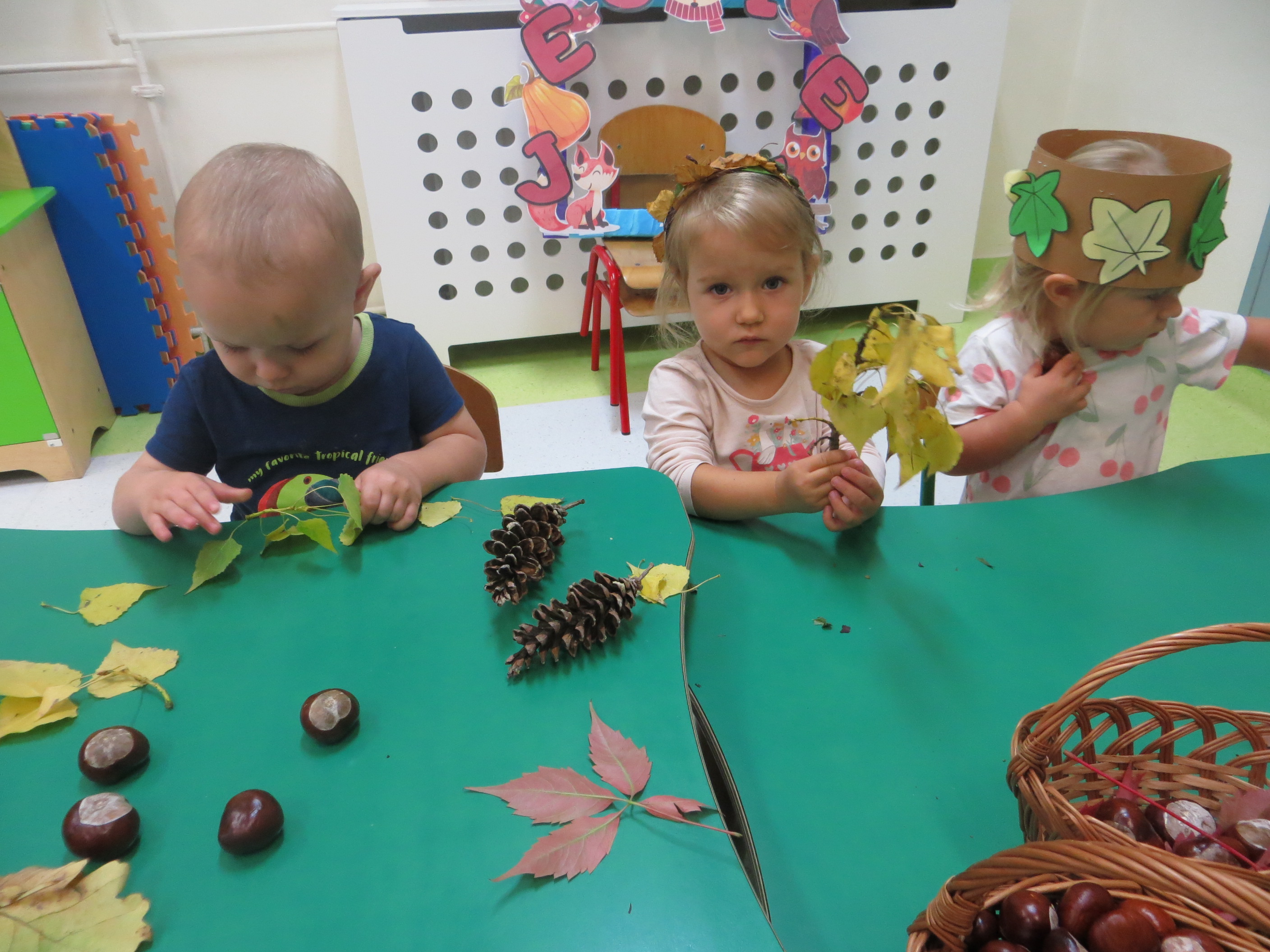 Lecą liście z drzewa, zbierają je dzieci,