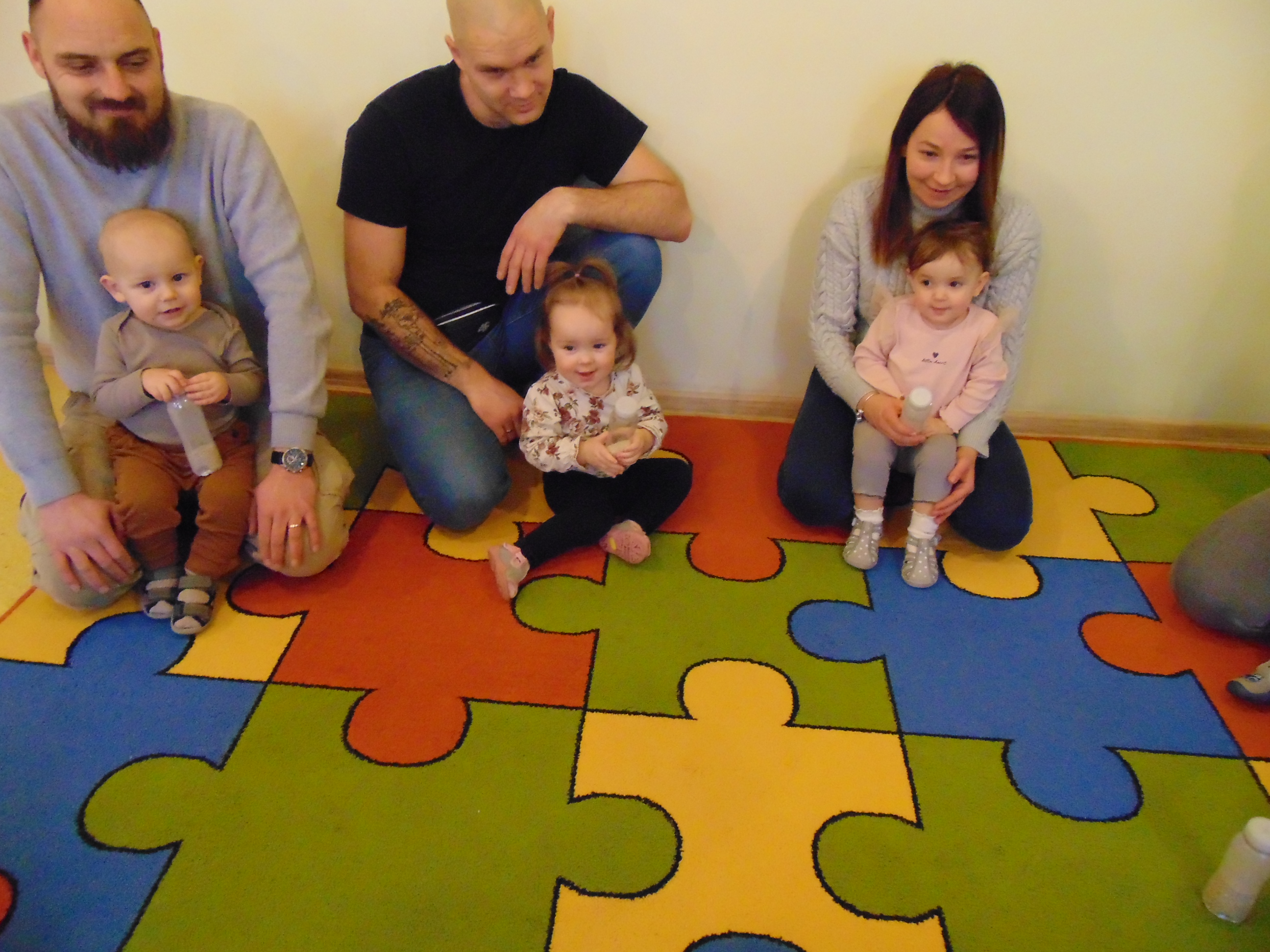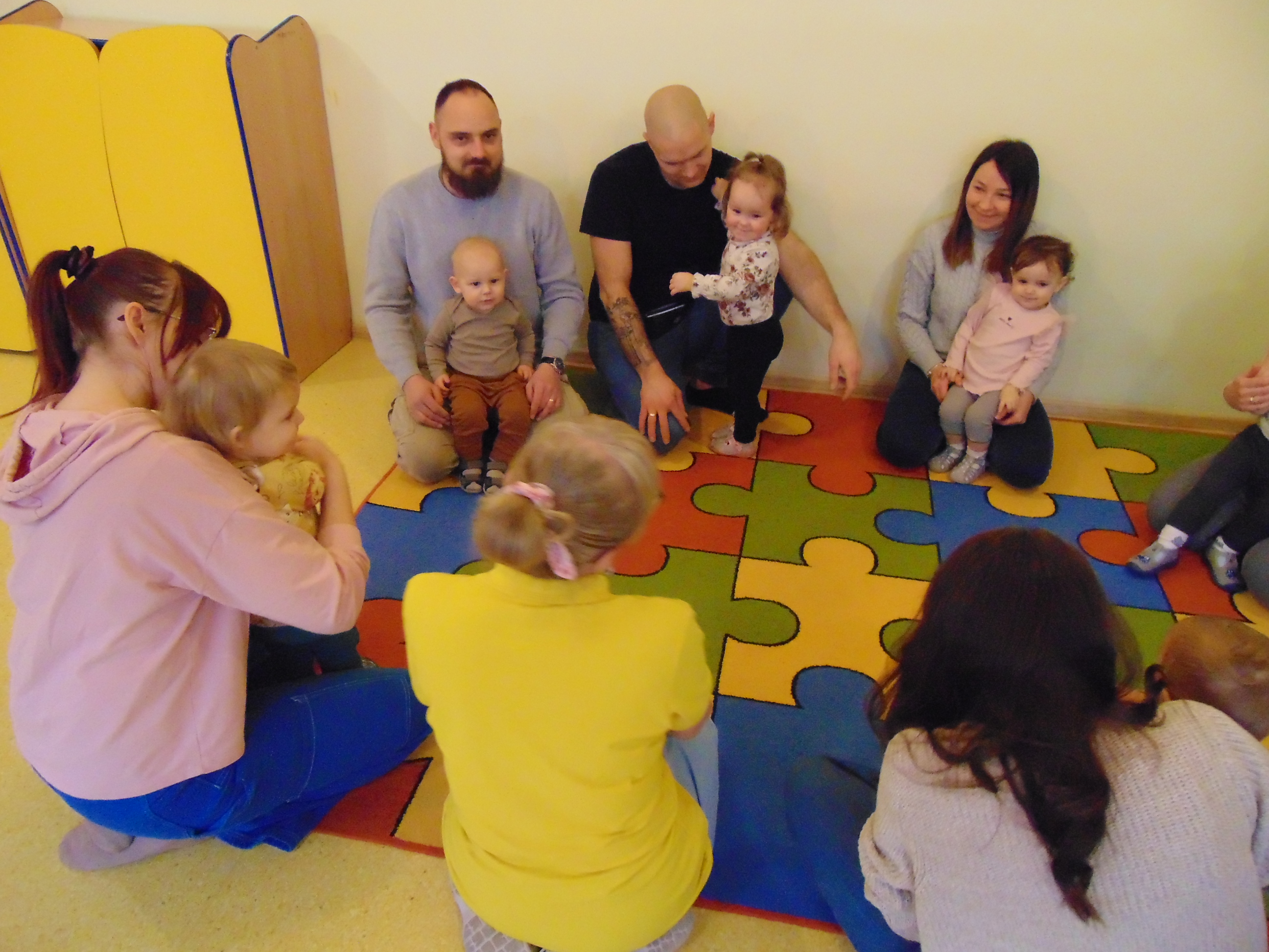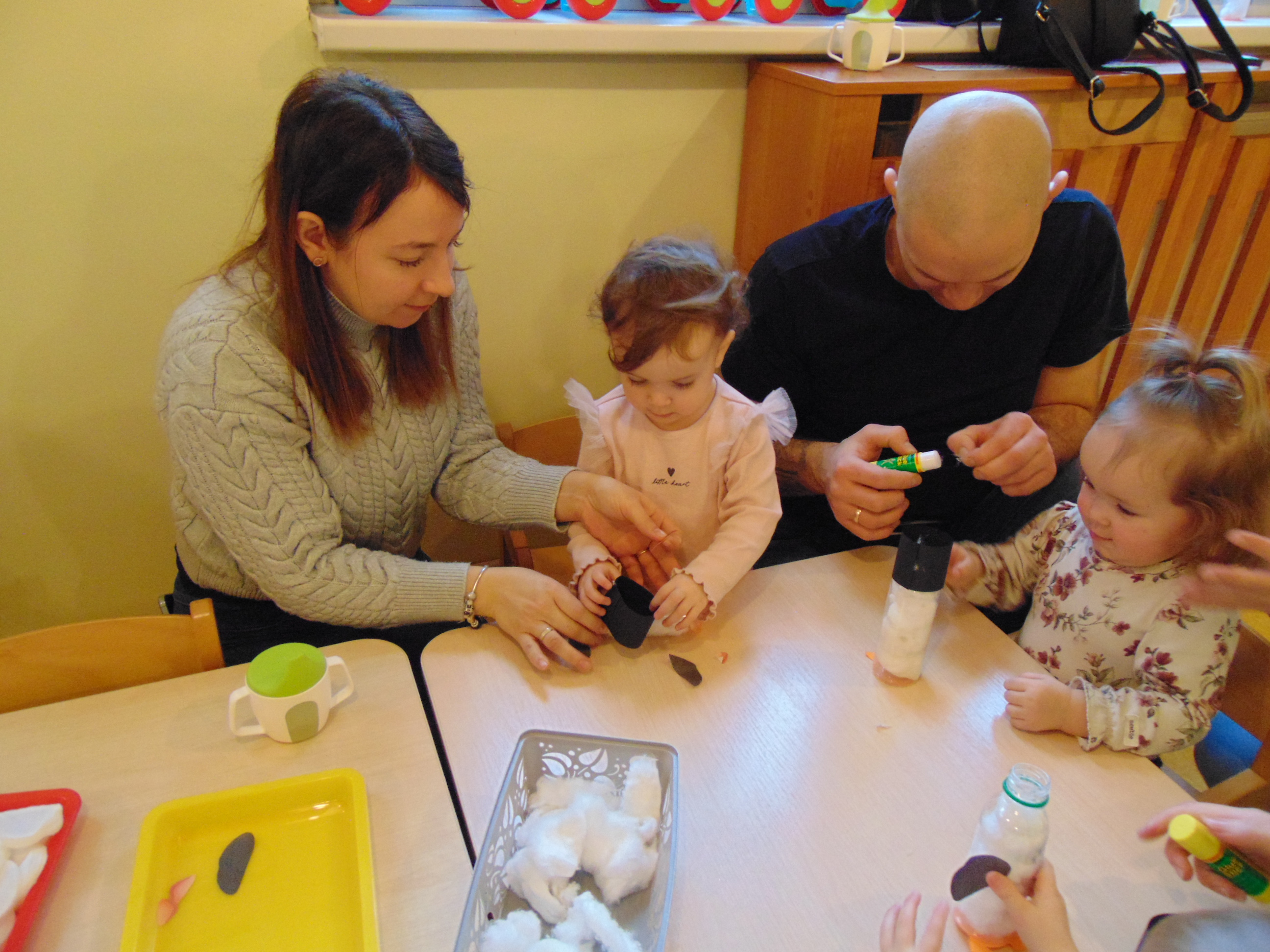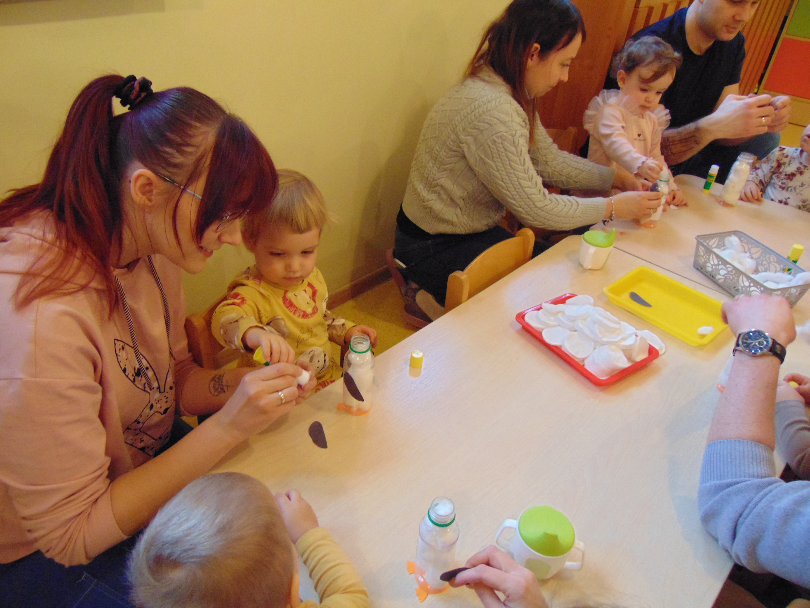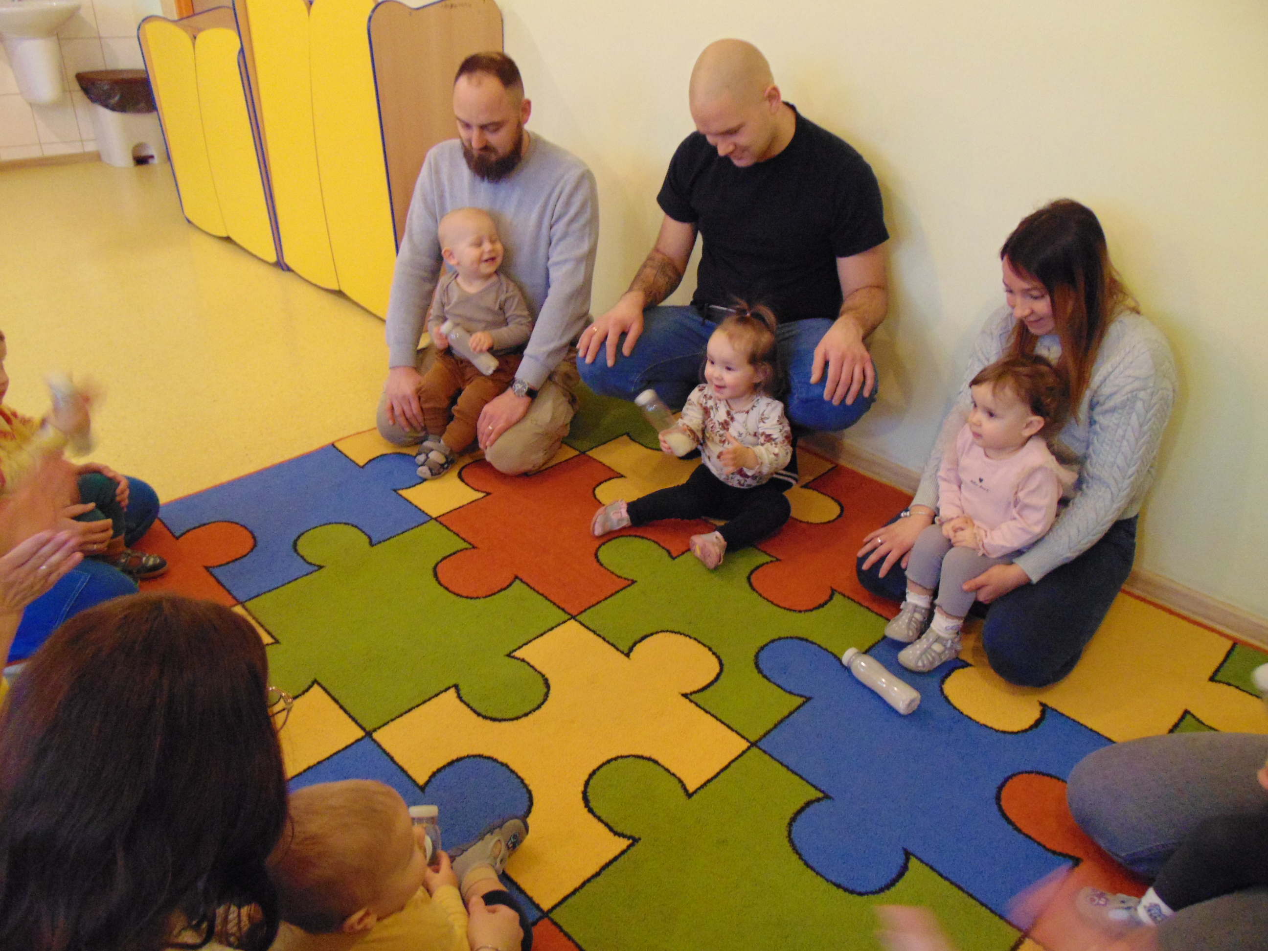 Podczas zajęć rodzice mieli możliwość towarzyszeniu swojemu dziecku podczas zajęć mając na celu zbudowanie radości ze wspólnego działania i poznania rytmu codziennego dnia w żłobku.