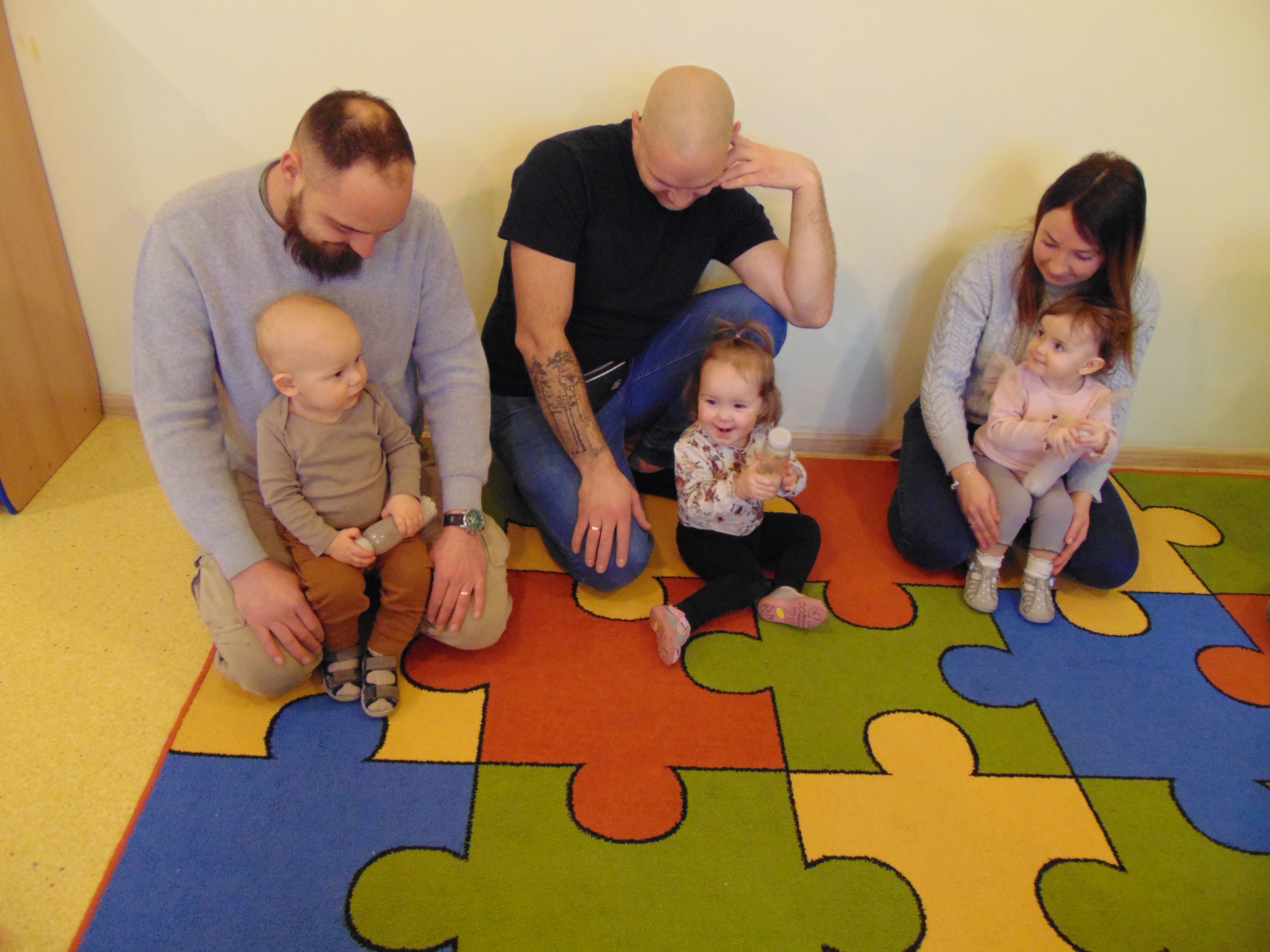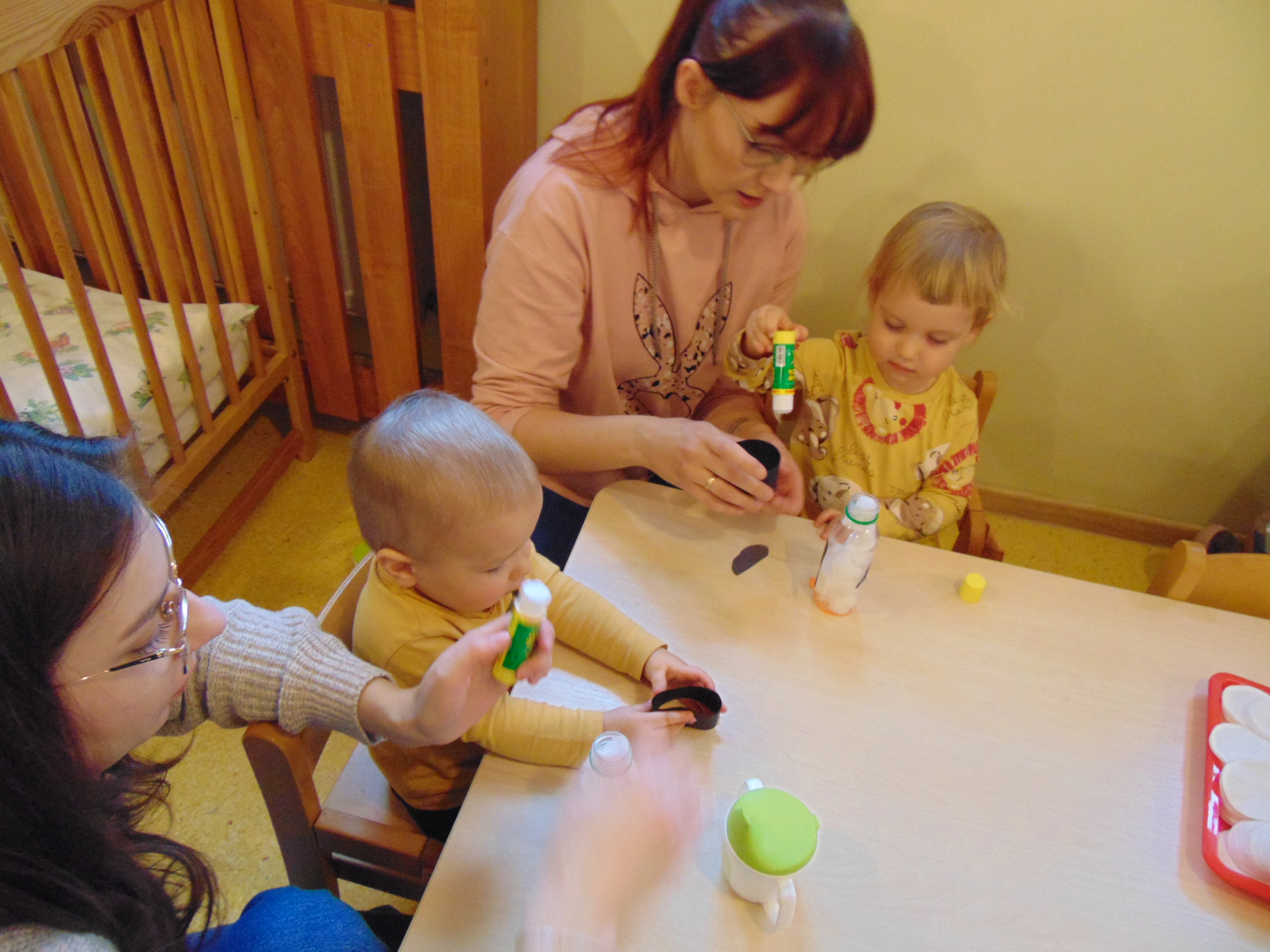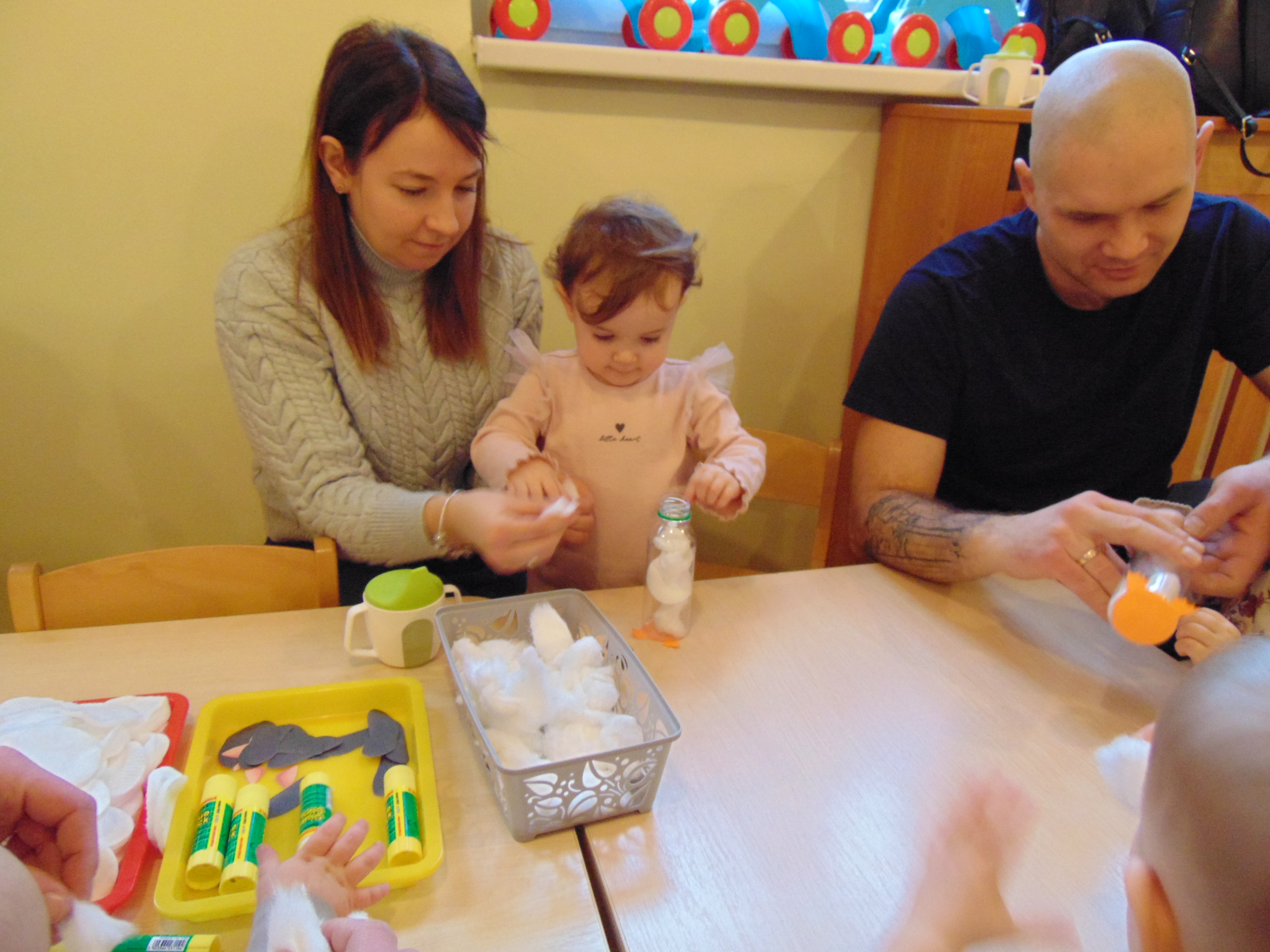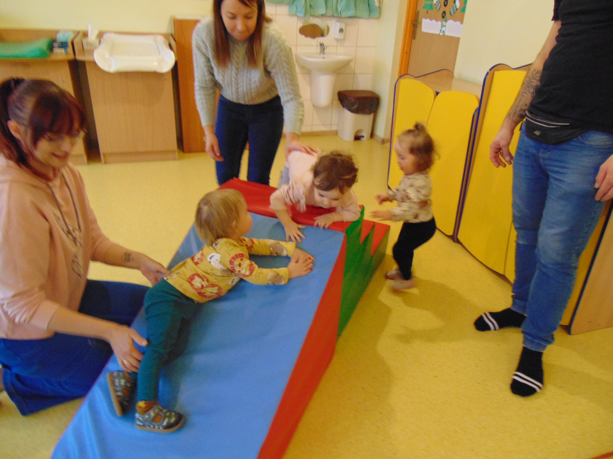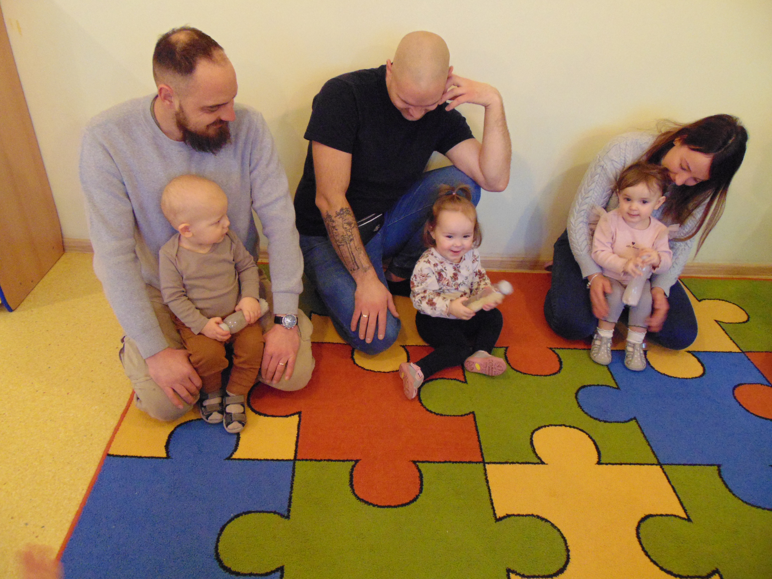 Podczas zajęć rodzice mieli możliwość towarzyszeniu swojemu dziecku podczas zajęć mając na celu zbudowanie radości ze wspólnego działania i poznania rytmu codziennego dnia w żłobku.
