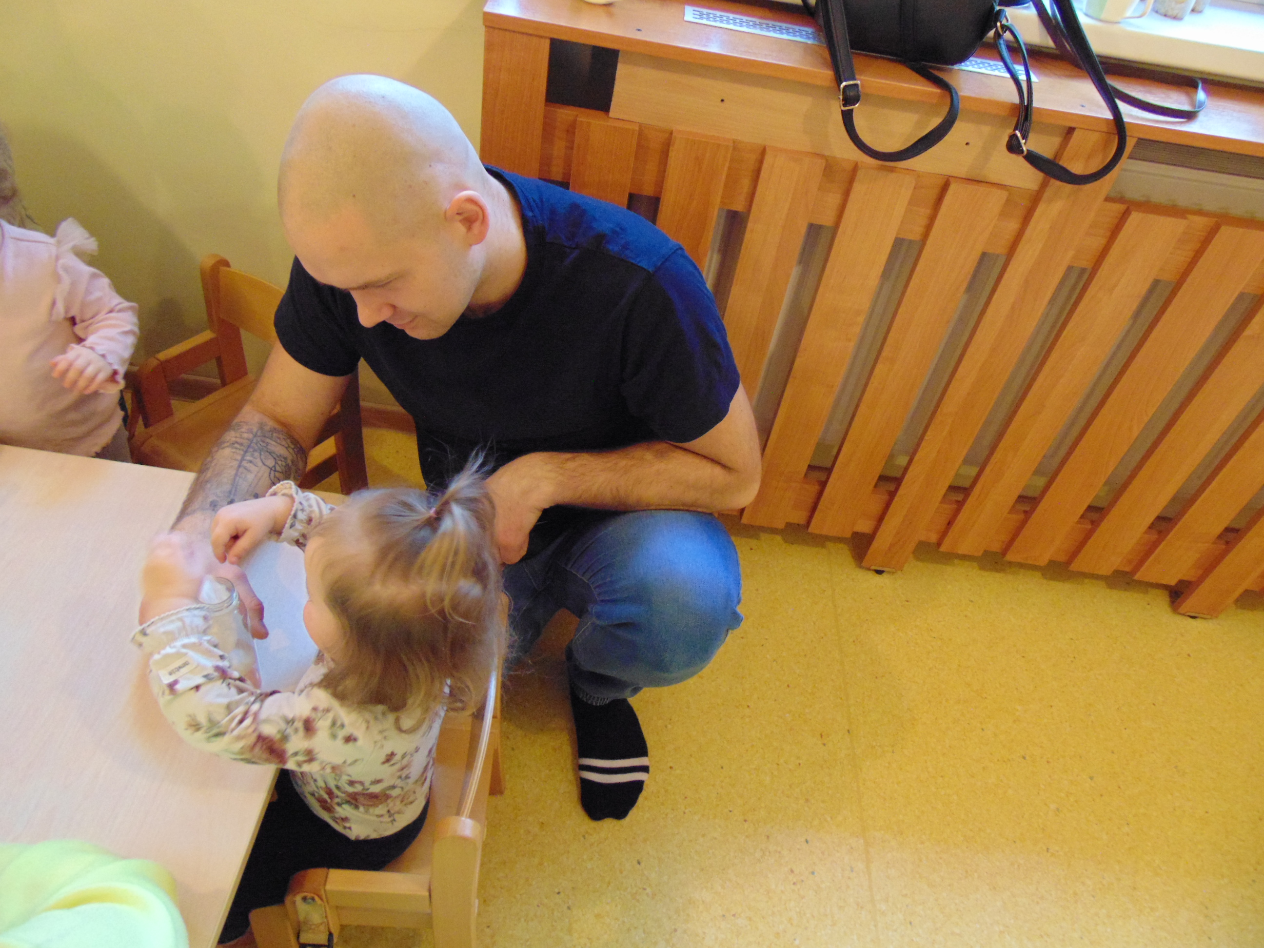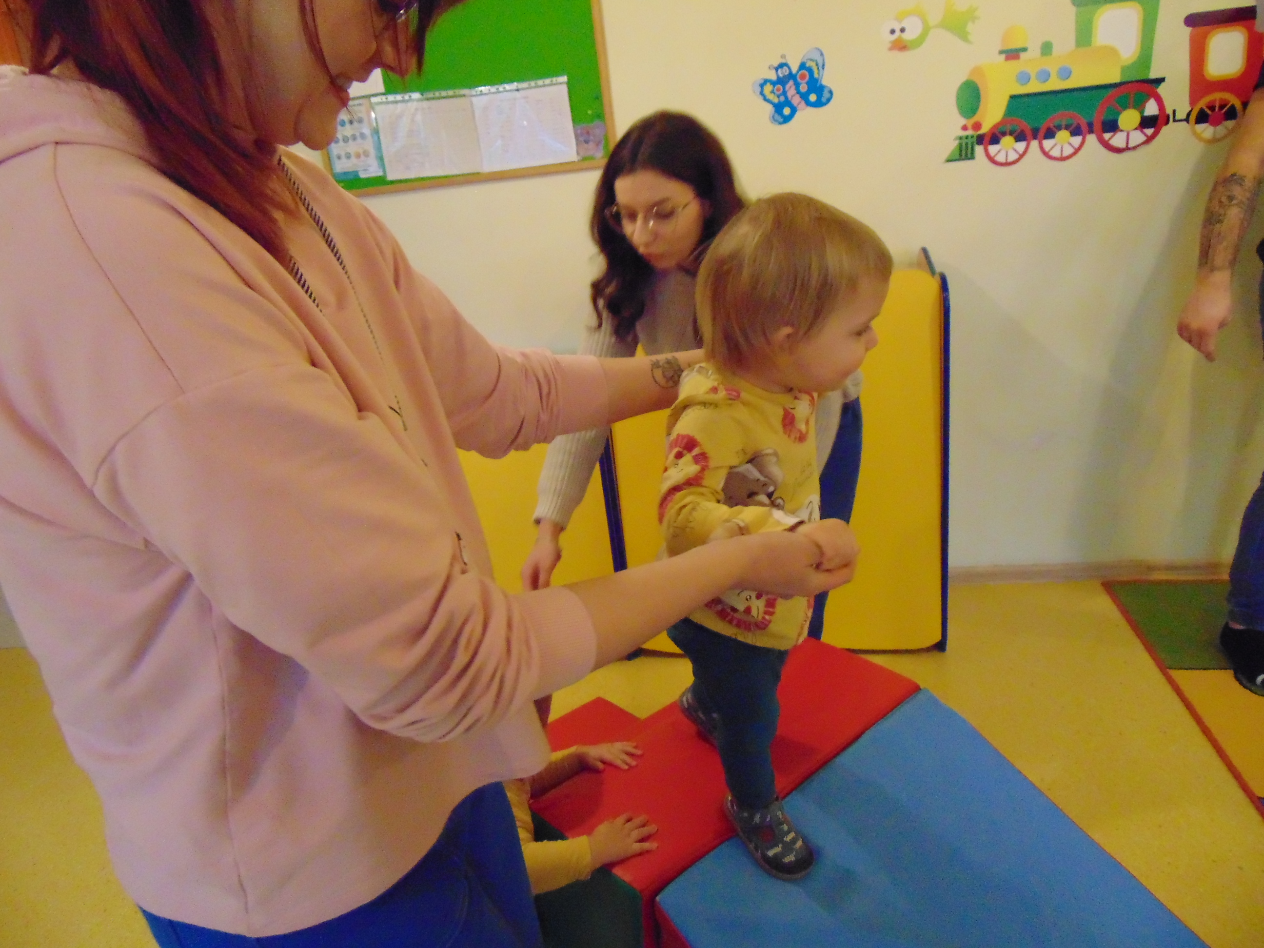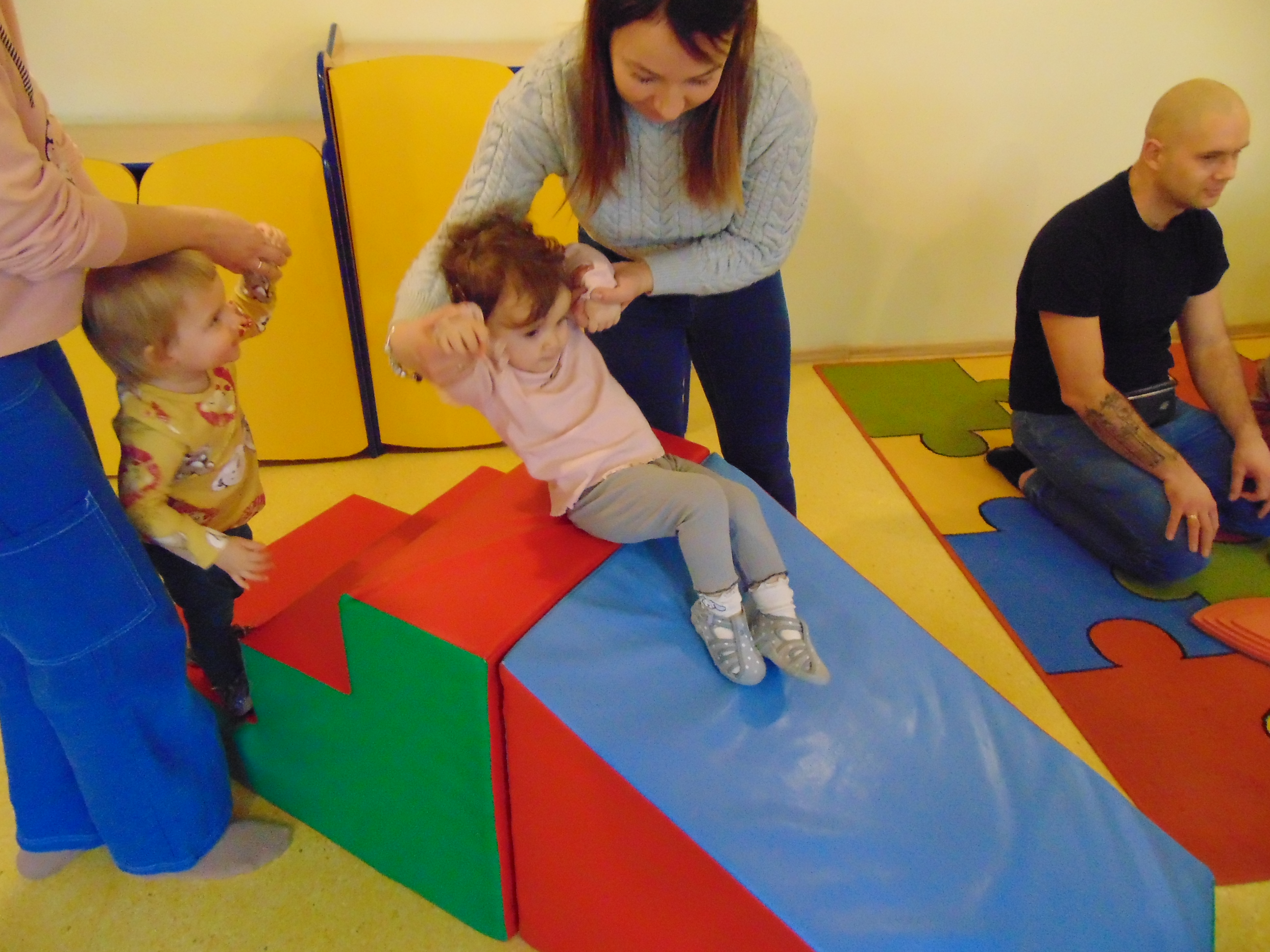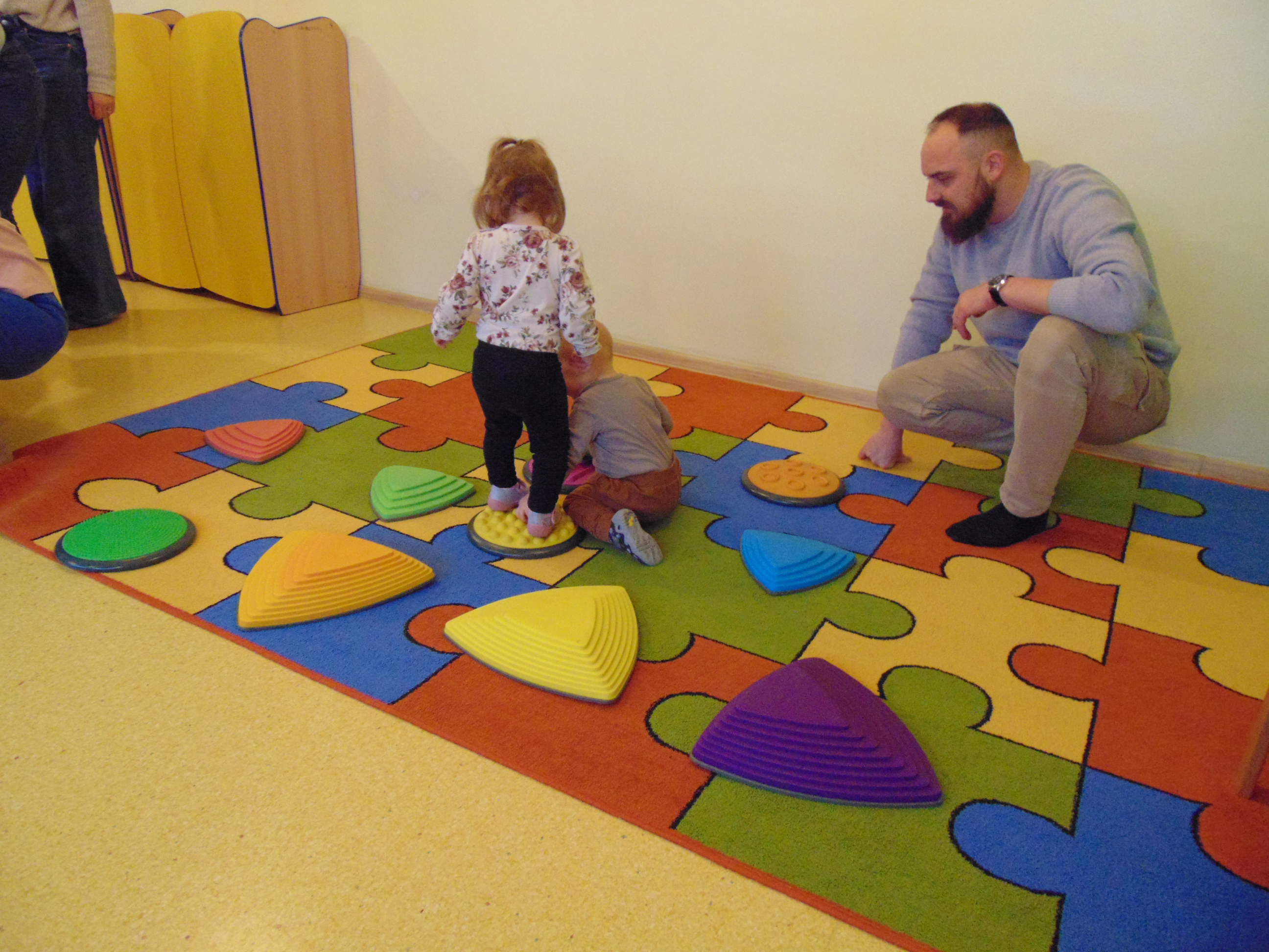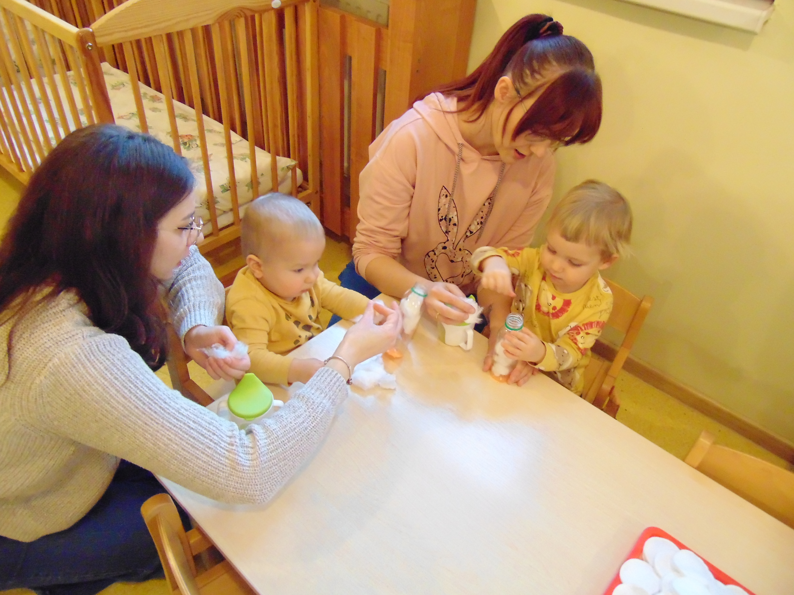 Podczas zajęć rodzice mieli możliwość towarzyszeniu swojemu dziecku podczas zajęć mając na celu zbudowanie radości ze wspólnego działania i poznania rytmu codziennego dnia w żłobku.